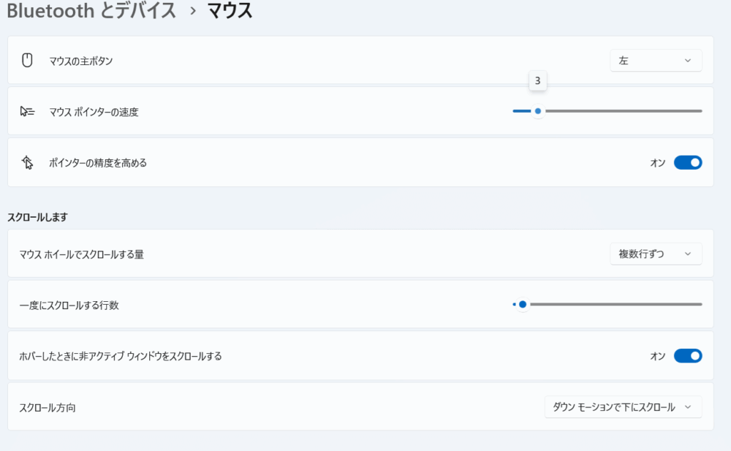 ためしに「3」に下げてみたところ、以前使っていたマウスとほぼ同じ感覚で操作できるようになりました。