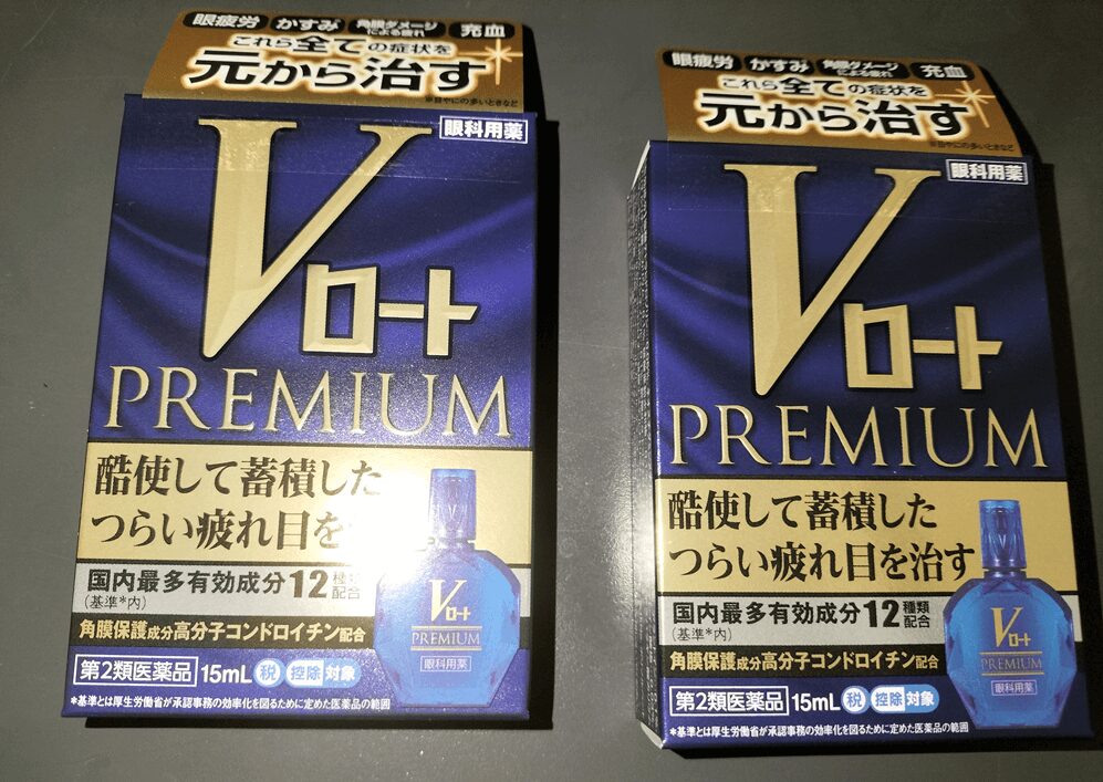 | Vロートプレミアム(2本セット) | ¥2,187 | ★★★★★(95点) | ドラッグストアより1,000円ほどお得。PC作業で必須。 |