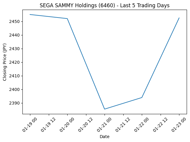 土日は取引がないため、直近では2026年1月23日のデータになりますが、終値は2,452.5円。